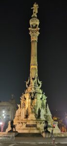 Colombus Monumento a Colón szobra 1888-ban épült az első spanyol világkiállítás alkalmából, emléket állítva az Amerikát felfedező Kolumbusznak, akit nagy tisztelet övez Spanyolországban, mert 1492-ben Ő érte el a caravelláival az Új világot, Amerikát, Izabella és Ferdinánd anyagi segítségével, ahonnan rengeteg kincset hozott, így tiszteltet és gazdasági fellendülést szerzett az újonnan alakult Spanyolország számára. Az emlékmű a Ramblas végén, a kikötő közelében, a Plaza del Portal de la Paz-n áll egy negyven méter magas korintoszi oszlop tetején. A 7,2 méteres szobor a tenger felé néz és ez a világ összes Kolumbusz-szobra közül a legnagyobb és fel is lehet menni lifttel tetejébe is.