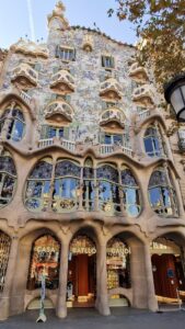 Barcelona egyik leghíresebb látnivaló épülete, a Casa Batlló, Antoni Gaudi 1904-1906 között készült alkotása. Ez a szecessziós épület Barcelona legszebb és legimpozánsabb sugárútján, a Passeig de Grácián található és az UNESCO világörökség részét képezi. Gaudí tulajdonképpen egy meglévő lakóépületet alakított át, a szerkezetét érintetlenül hagyta a meglévő erkélyeket átépítette, de új emeletekkel és tetővel gazdagította az épületet. Ahogy Gaudítól megszokott, sehol nincs egy egyenes vonal, csak organikus, a természet által ihletett formák találhatók. Anyagában főleg fával, kovácsoltvassal, mozaikkal, kerámiával, és ólomüveggel, dolgozott. Az aszimmetrikus tetőszerkezetet kerámia lapokkal borította, a szellőzőnyílásokat és kéményfőket pedig üvegmozaikkal díszítette. A homlokzat kialakítását a tenger élővilág inspirálta, mind színeiben mind formai világában.