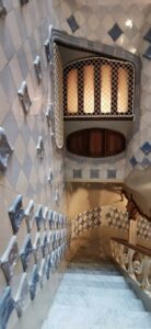 A előcsarnok egy a földszinten elterülő közösségi terem amely a Batllo család előszobájába vezet, a boltíves falakkal, a mutatós falépcsővel, és teknőspáncélokra emlékeztető tetőablakokkal, víz alatti világra emlékeztet, a fából készült korlát pedig olyan hatású, mintha egy hatalmas állat gerincéből készült volna.